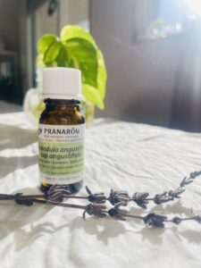 お持ちの精油にラベンダーアングスティフォリアがあるとのことでしたので、2%濃度くらいに希釈して塗布をお伝えします。